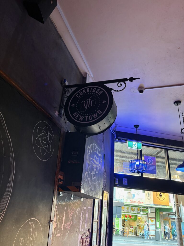 In the end I made a much better choice and sat at Corridor in Newtown for 6 hours where the coffee stain was hidden by the bar. It’s an excellent bar – thanks to the great staff – Keira and Alex. By the time I left it was dark, cold enough for a jacket and no one could see the coffee stain. I might have popped in to a gay bar after that, but that’s a whole other story.